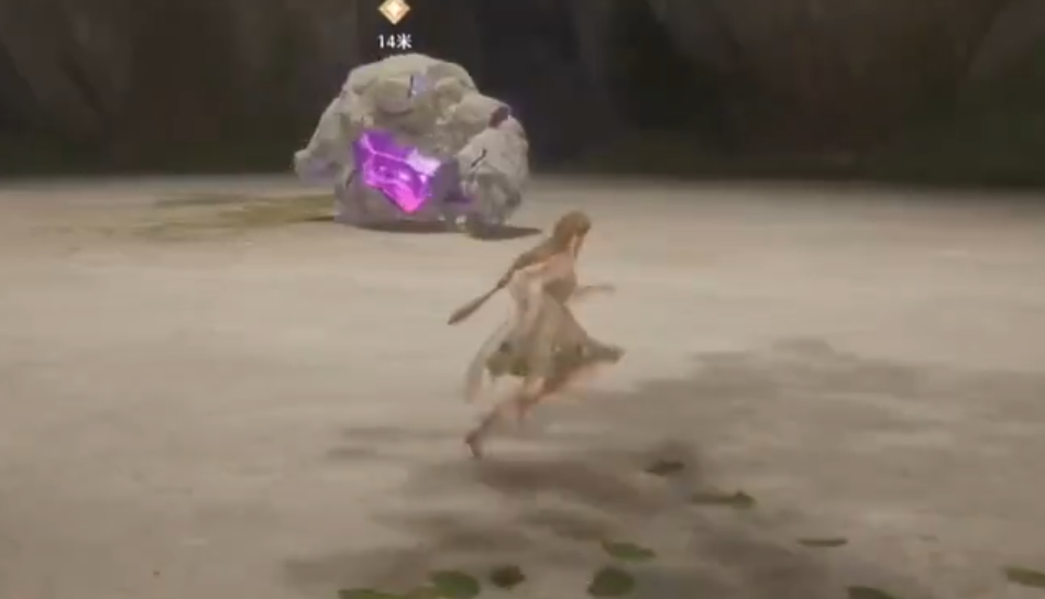 它的第二个招式会突然向后方跳跃,做出这个动作时我们就需要注意,跳跃后也是仍石头,但这次会连续丢出,这里同样有个技巧那就是直接绕着它跑,如果走位不慎的话也可以靠闪避来补救,最后躲完一定要记得打一下核心。