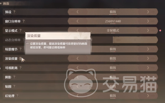 渲染质量:会影响到角色的效果以及画面的质量。阴影一旦在关闭之后,投影看上去更虚假,应该适当性的降低。