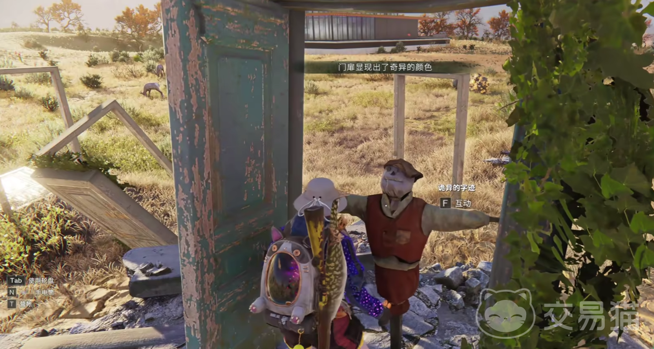 稻草人位于黑心地带传送锚点东南面的两百米处,在一个破损的门扉中间,玩家就能够察觉到奇异的能量流动,随后玩家使用交互功能,和稻草人展开对话,就可以通过劈砍的技能,在稻草人的下方寻找到藏有弹匣蓝图的宝箱。