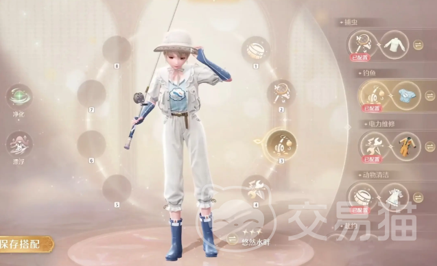 第六套则是“纯净之风”,整体偏白色调的裙装,可以用来净化魔灵。第七套叫做“灰尘拜拜”,非常可爱的一套服装,是为了清洁小型动物而存在的能力,进化后有黑色点缀,更加神秘一点。最后一套是“悠然水畔”,也是很多朋友想要的,毕竟该套装的能力是钓鱼。