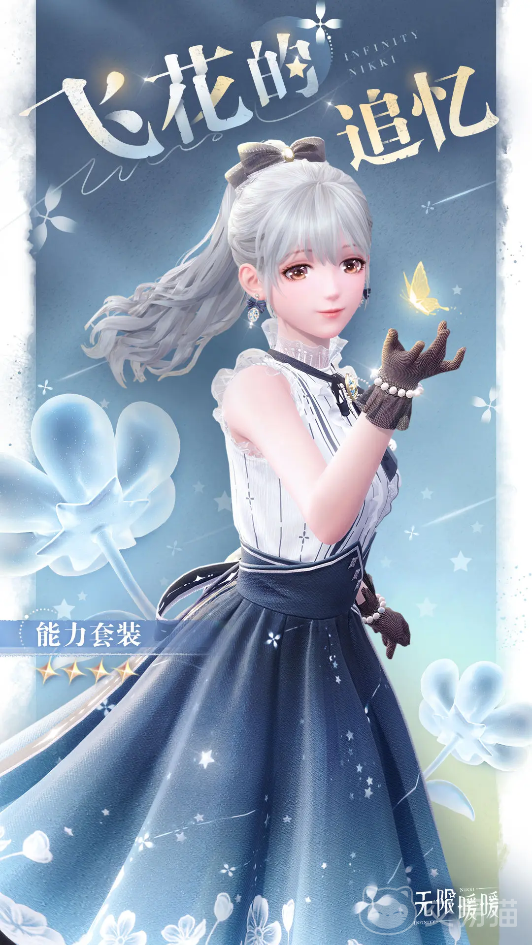 第一个能力套”轻盈泡泡”,这个套装通体的主色调是蓝色,白色点缀在其中,看起来就非常轻盈的一套裙子。穿戴上之后,能让暖暖在较短时间内漂浮在空中,蓝色是初始的服装色调,在进化之后整套会以绿色调为主。