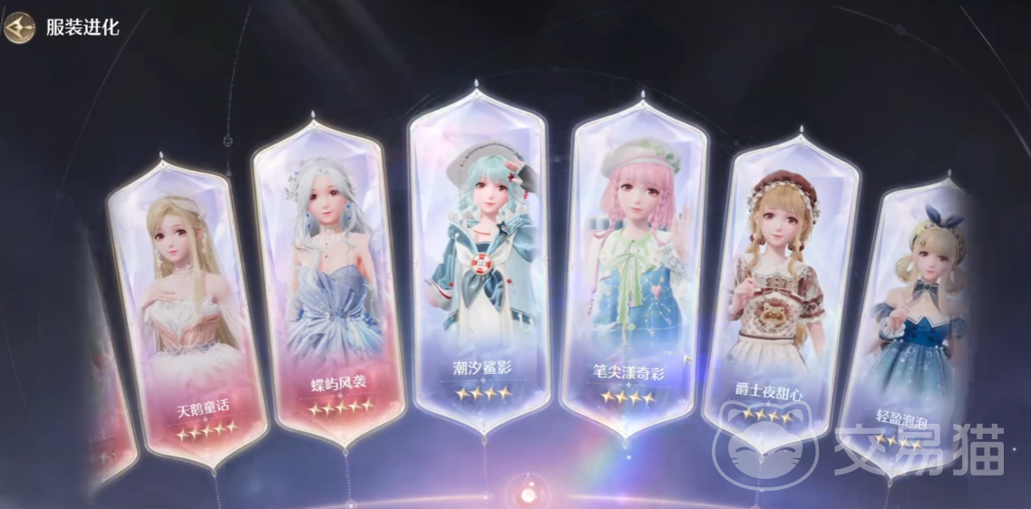 第四套”飞花的追亿”,这也是一个裙子的套装,上身白色,下身偏向深蓝色,能让角色具有空中漂浮的能力,进化之后的服装颜色偏深沉一点,更加的端庄典雅。第五套“琴弦之诗”,十分淑女的套装,切换后可以演奏小提琴曲目。