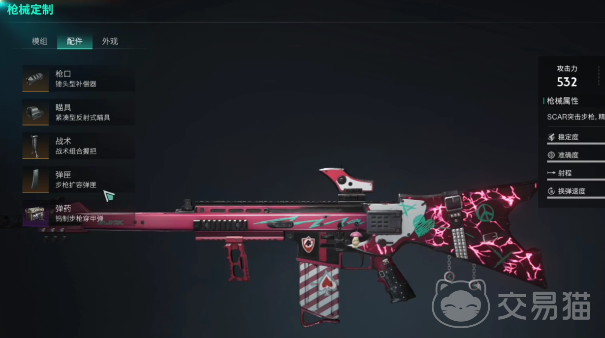 为了增加最后的勇气异常属性输出特技,所以在配件的方面,建议玩家分别选用锤头型补偿器、紧凑型反射瞄具、战术组合握把、步枪扩容弹匣、如若有条件,玩家也可以在弹药方面选择钨质步枪穿甲弹,由于最后的勇气属于金色属性的突击步枪,他总共会设有四个金色卡槽和一个紫色卡槽,当占用了所有卡槽之后,玩家还可以顺带触发卡槽的特殊效果,至少能够增强射击输出的10%。
