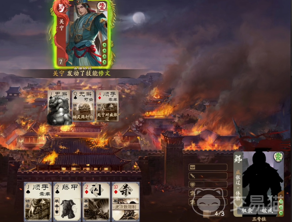 他不仅是历史中的名将,更是三国杀中的战术天才。在无数战斗中,张辽凭借出色的直觉和判断力,屡屡在关键时刻把握战机,给敌人致命一击。现在,游戏中的“威张辽”正是这种非凡能力的象征。每一次技能的连贯释放,都仿佛是他在实际战场上精心策划的策略,让人叹为观止。面对敌人,威张辽的每一步都充满了威胁,任何疏忽都可能让敌方付出沉重代价。
