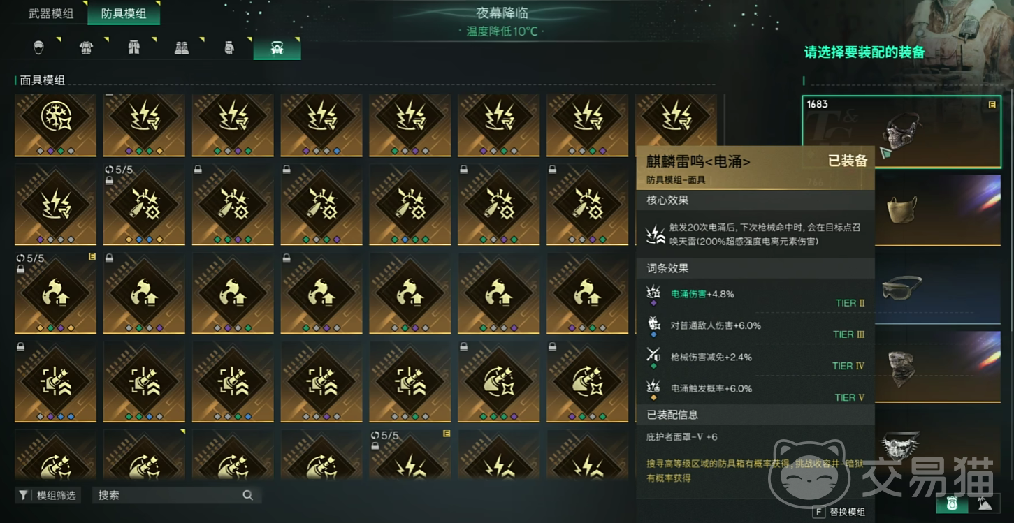 防具的选用上面,可以直接选用异常专家套件,异常专家不仅可以增强电泳触发率,还可以叠加基础功几率,该攻击倍率至少为30%。