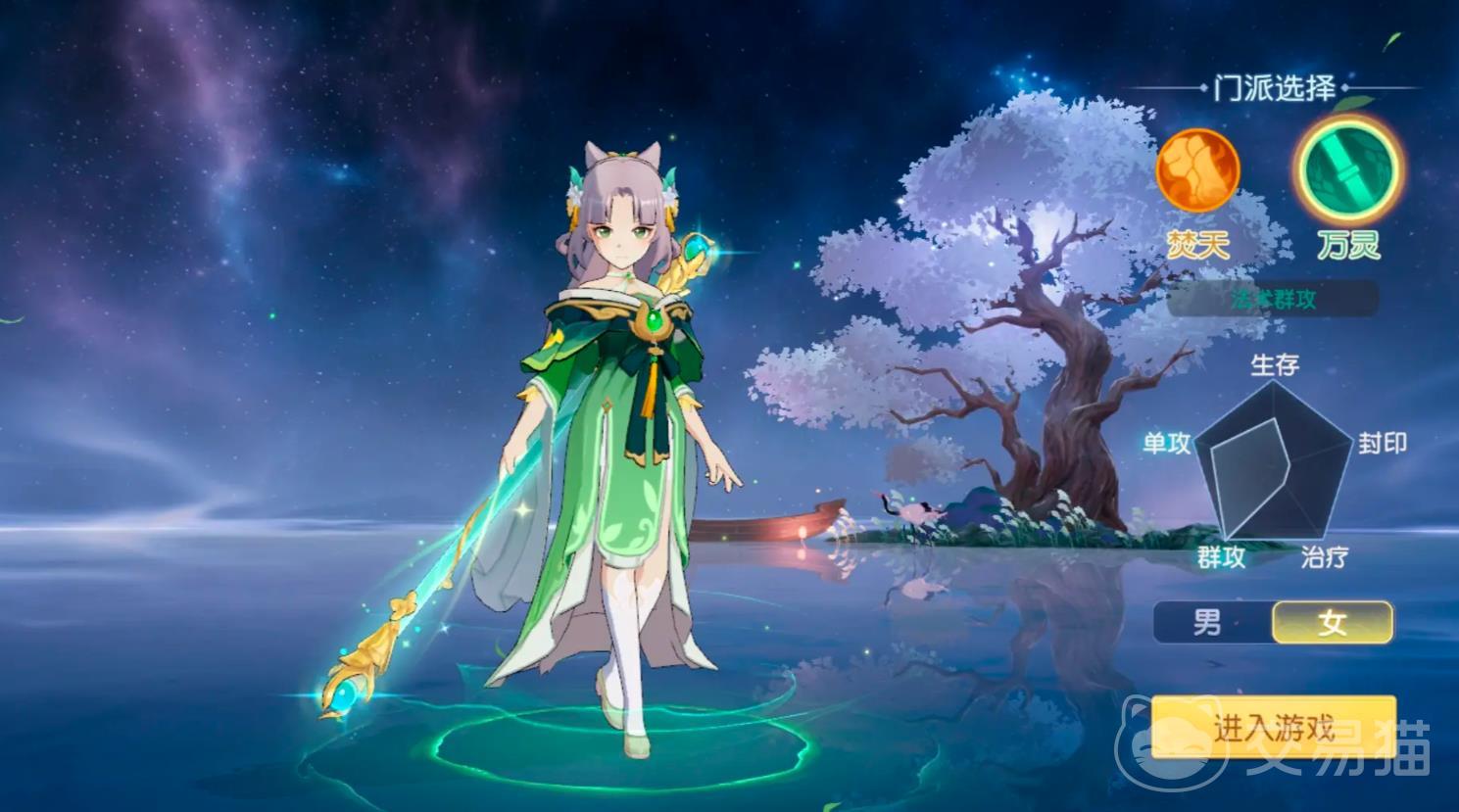 使用棍的武器,主打法系输出,有强大的法术面伤能力,擅长群攻,可以对敌人打出稳定面伤,同时和契灵等也关系密切。他们突出的能力尤其是在妖王挑战等活动中,具有天然的优势。而且他们的法术命中率极高,不论是在日常任务,还是在PVP战斗中都是极为可靠的存在。例如“白猿落”就能临时提高角色法攻,对敌方4个目标造成一定法术伤害。
