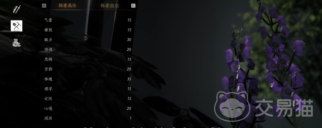 虽然不强求特质,但是既然能够选择,那么还是选择一个性价比高的,一开始建号时,解锁的志趣技能都在总点数200的池子当中,最多解锁四个,最少1个,这个池子影响基础玩法比较多,总点数400和600的更多的是优化游戏体验的,所以“眼力”,“雅致”,“体魄”这三个属性,在游戏初期阶段,不论是单属性技能,还是双属性,都能让大家尽快解锁更多的技能,初始特质一般为4-5条,金色的能加20点,紫色的加10点,蓝色的加5点,特质词条会影响人物的志趣各项属性点数。