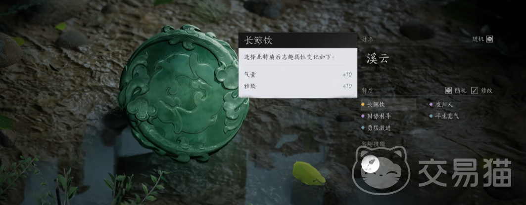 创建账号的时候,捏完脸,取完名称之后,比较重要的就是对初始的特质进行选择了,特质会影响初始属性,属性会影响志趣技能,而各项属性点,除了阅历,只能通过等级的提升而增加,其他属性都可以通过特质以及相应的玩法来提高,所以其实没有必要太过强求特定特质,毕竟只要玩的久了,什么都是能拥有的。