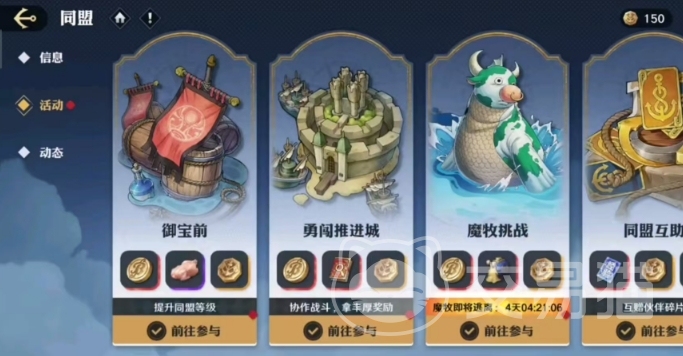 同盟提升等级是需要所有成员共同努力的,大家可以通过捐献物资、完成同盟任务等方式提高同盟等级。捐献物资不限制材料,金币或可以使用的道具都可以,捐献资源提升同盟等级的同时,还可以为自己的角色提升部分等级。同盟中的任务也很多,周一到周日同盟都会发布不同的任务,大家可以根据自己的玩法选择单人或者多人进行闯关,每次完成同盟任务后,还会获得丰富的奖励。