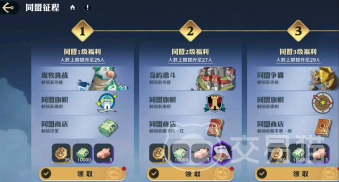 航海王壮志雄心中的同盟,简单地说就是其他游戏中的帮会。不过想要加入帮会也是有基础条件的,需要角色达到一定等级后才会开启。开启加入同盟后,就和其他玩家一起玩。因同盟中的资源全部都是共享的,所以加入同盟要比孤狼玩家所获取的资源多。同盟有聊天、争霸和勇闯推进城等多种玩法。