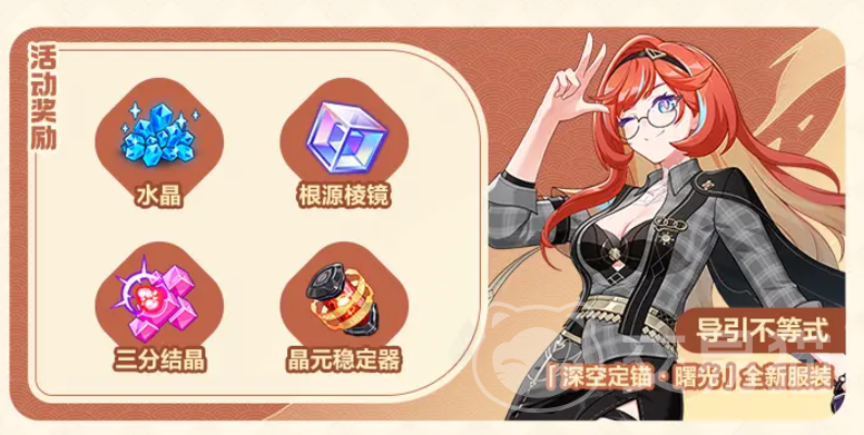 新的版本还会开放全新的主题“倒计时:好梦开始!”活动,奋勇参与活动就能领到“深空 定锚·曙光”的新皮肤等奖励。新活动怎么少得了新福利,体验新版本内容完成一系列任务可以瓜分多达3亿的水晶,获得精英凭证解锁券等福利。