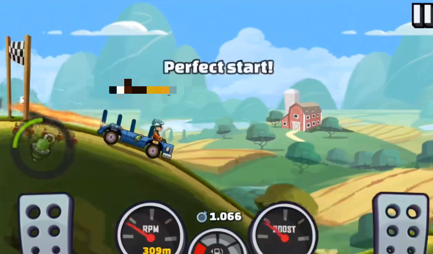 这款游戏的玩法其实就是左手控制刹车,右手控制油门,而在开始起步的时候有一个三秒的等候时间,这个时候就已经要把手放在油门上面轰到最大了,起步的时候才能更快的冲到前面的名次;然后右手就一直按着,碰到陡峭的地方感觉车头向上翘就不要一直按刹车,可以松开右手油门再连续点击左手刹车。