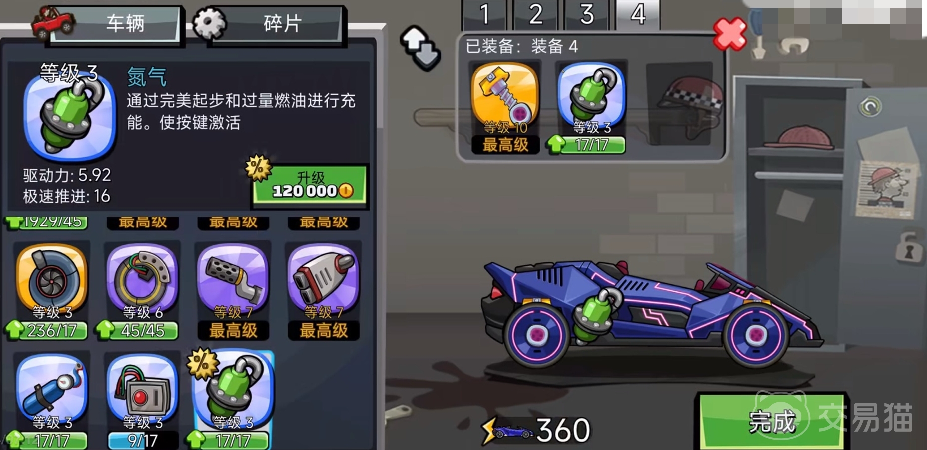 先说缺点就是不能遭受任何头部撞击,因为没有保护措施;但是其在直道的加速表现是完全不输于肌肉车的,而且外形比较酷炫,尤其是升级了轮胎和护栏之后,起步就能快其他车型一大截,速度方面有绝对的优势。
