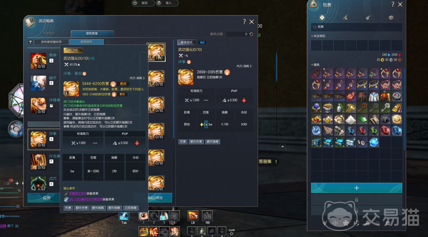 盘龙腿三阶二段之后就有可以点出眩晕的效果,以及山崩形成双控制。擒拿之所以学到这么高,主要是为了后续的点穴技能,点穴伤害极高,只要施展之前或者是施展过程中攻击触发暴击,那么后续所有的技能都有相关暴击。