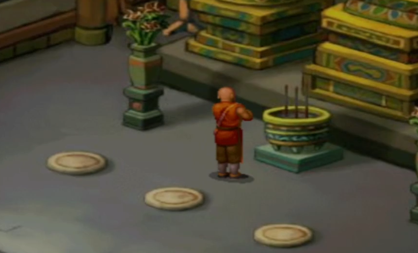 从杂货铺出来后可以看到一个穿白衣服的人,我们可以和其进行对话,这个人其实就是唐寅。在对话完毕后可以去往下方的豆浆铺喝豆浆。喝完后会恢复一定的体力。之后我们需要沿着分岔路口往下面走。