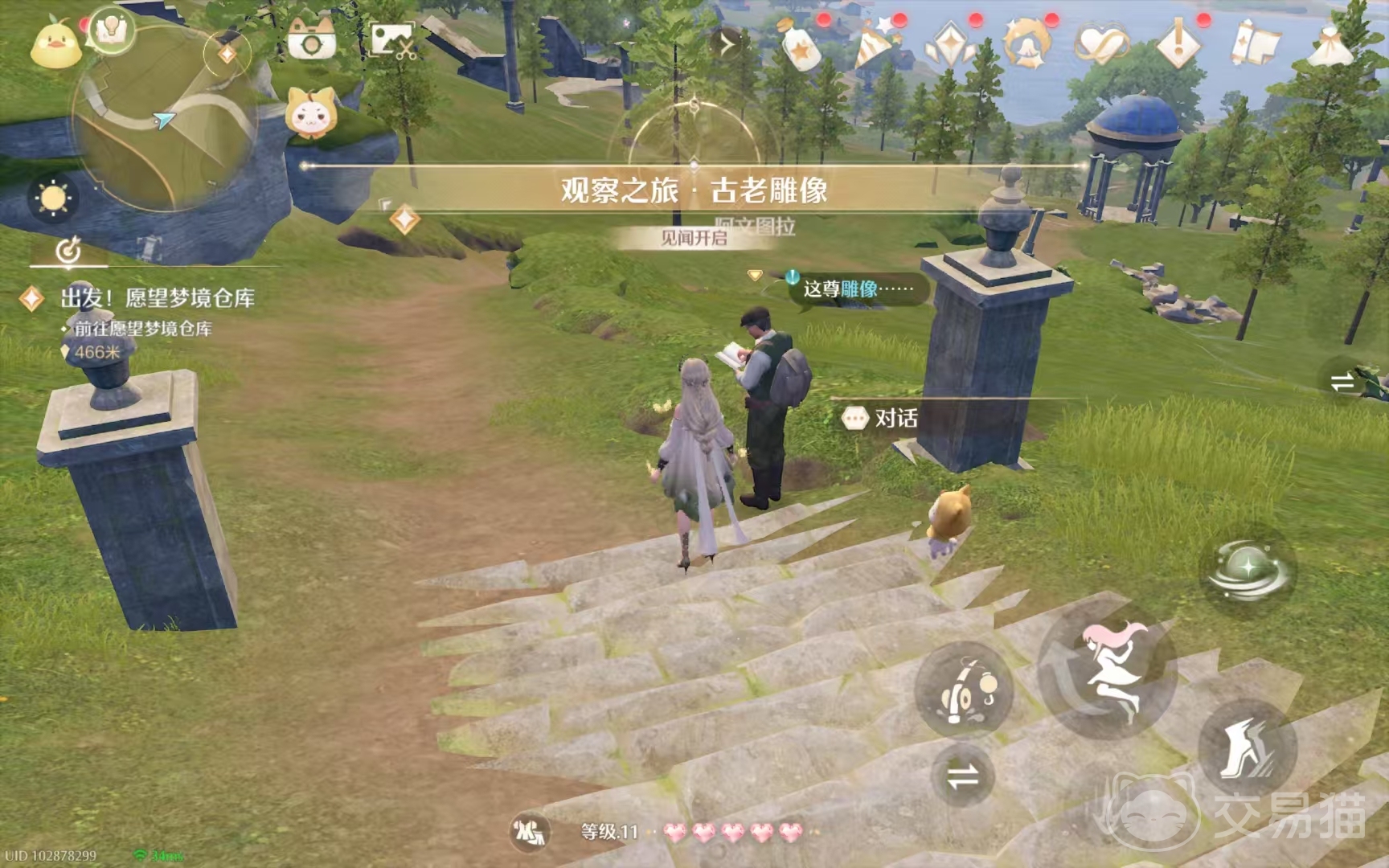 在答对了之后,阿文图拉会在夸赞我们观察力细致入微之后,询问我们是否知道关于雕像的历史。此时我们回答不知道之后,阿文图拉就会对我们进行科普,告诉我们这座公园建立了已经有5000多年了,公园的名字也是因为人们为了纪念古花愿镇才起的“古花愿镇纪念公园”。在科普完毕之后,我们就可以获得丰富的钻石奖励,以及解锁许多相关见闻啦!