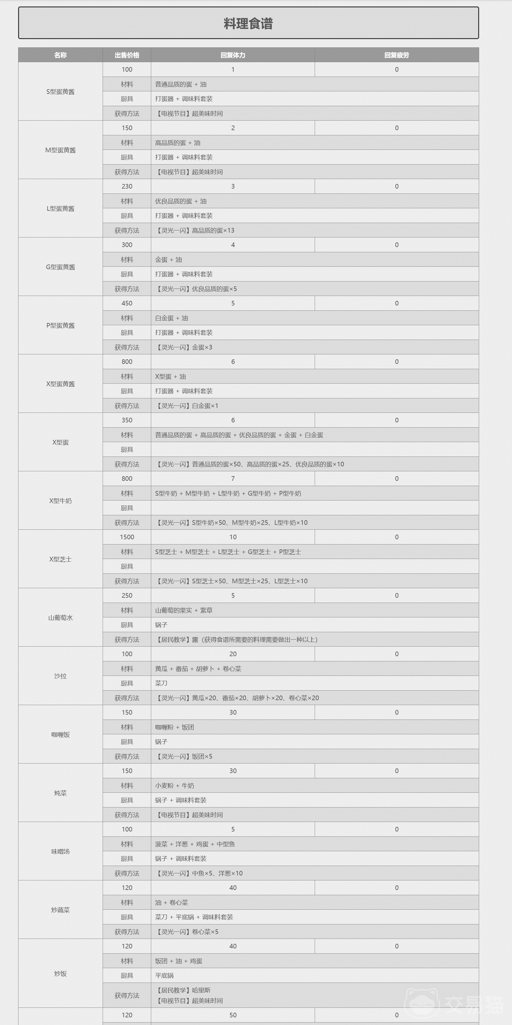 牧场物语重聚矿石镇食谱大全 牧场物语重聚矿石镇食谱获得方法分享