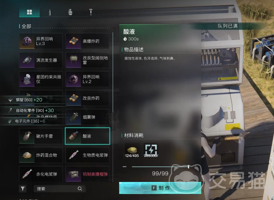 首先,提到模因专精,我们不得不提的就是“硫磺化工”专精。如果你想让自己在后期的资源管理中占得先机,那么这绝对是一个必选的专精。硫磺化工能够生产“酸液”,这在七日世界中的价值堪比黄金。酸液不仅是解锁新技术和建造高级设施的关键,还能用来兑换其他珍贵资源。简单来说,有了酸液,你的资源压力将会大幅减轻,后期的生存效率也会大大提高。生产线一启动,你就会感受到“酸液万能”的威力。