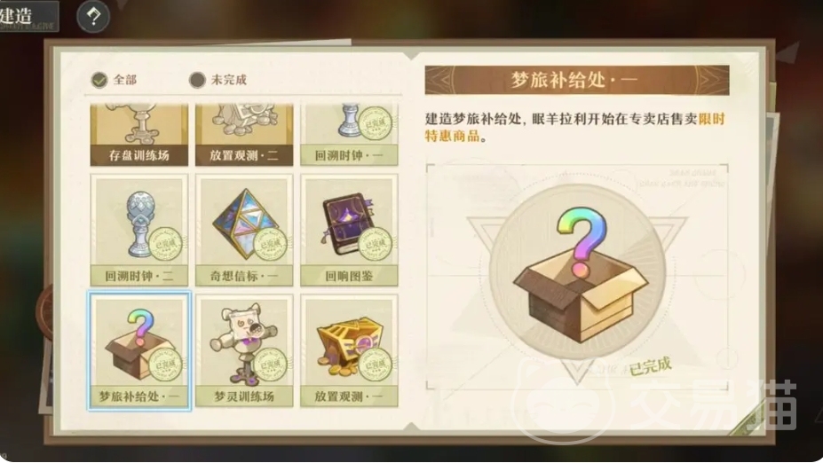 无尽梦回开局攻略分享就到这里啦,还有梦境建造模式下的梦旅补给处对于资源管理至关重要,这里可以用金币兑换各种材料甚至是紫色品质装备,因此强烈建议尽早建立并升级该设施哦。