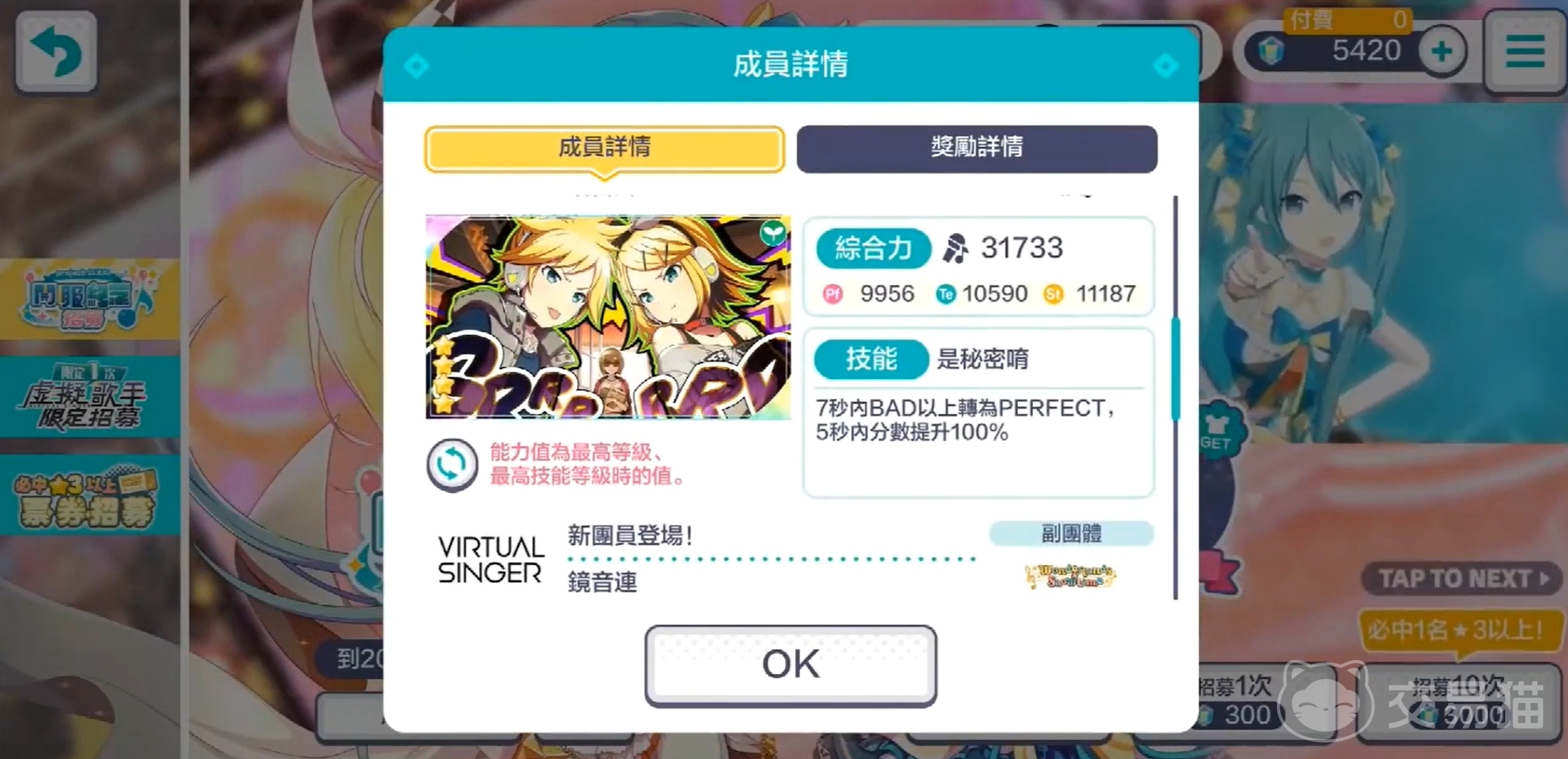 该作中也有着抽角色的设定,并且所获得的角色在养成后也会为玩家们的音游体验带来一些正向的反馈。当然了,这些角色并不能直接地帮玩家们完成挑战,但她们的能力可有效地避免玩家因失误而丢失大量的分数,部分角色甚至能玩家打出BAD后,在接下来的有限时间将判定全改为PERFECT,让人们能更轻松地去挑战高得分。而且该作中的抽卡货币都比较好攒,卡池机制对玩家也较为友好。