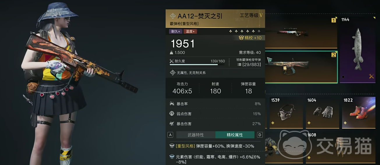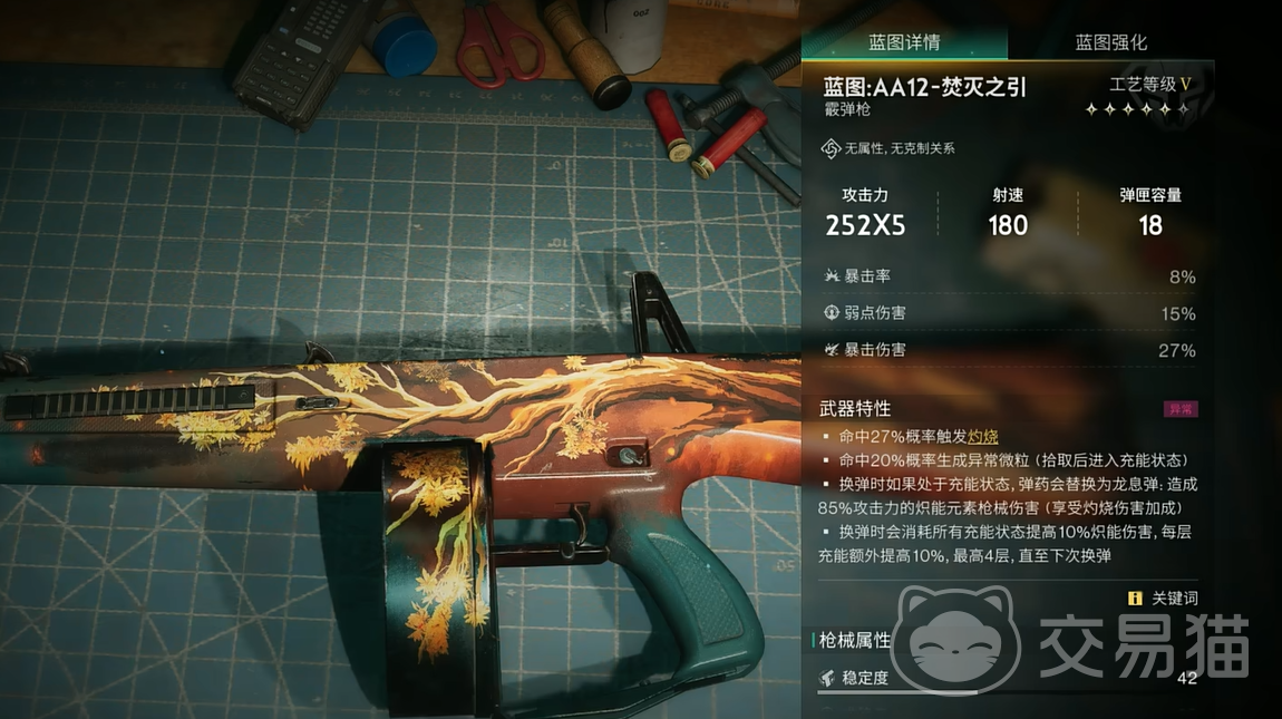 焚灭之引是一把非常霸气的霰弹枪,它被赋予了火属性,整体呈现出重型风格。它的攻击力相当惊人,高达2000点,这一数值在游戏中的众多武器里是非常可观的。而且它的暴击率也不容小觑,这使得它在战斗中常常能够打出爆发性的高额伤害。