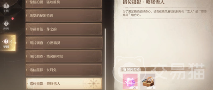 完成拍摄后,玩家们可以去寻找NPC晒晒,把你所拍的照片交给她,就能够将任务完成了。此时,你会得到相应的见闻奖励,提升你的拍摄成就,并完成这次有趣的任务。