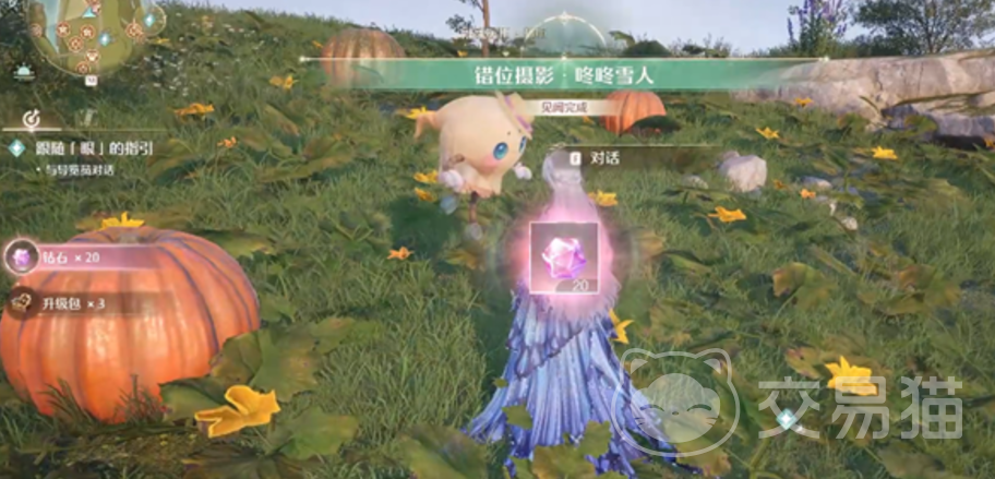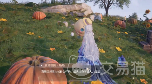 当你来到小屋前的南瓜田,你会看见任务NPC“晒晒”。靠近之后和它对话,先了解相关拍摄需求和任务要求。对话结束后,你就可以进入拍摄环节了。任务要求你拍摄一张“南瓜雪人”的照片,接下来的任务就是发挥你的拍照技巧啦。