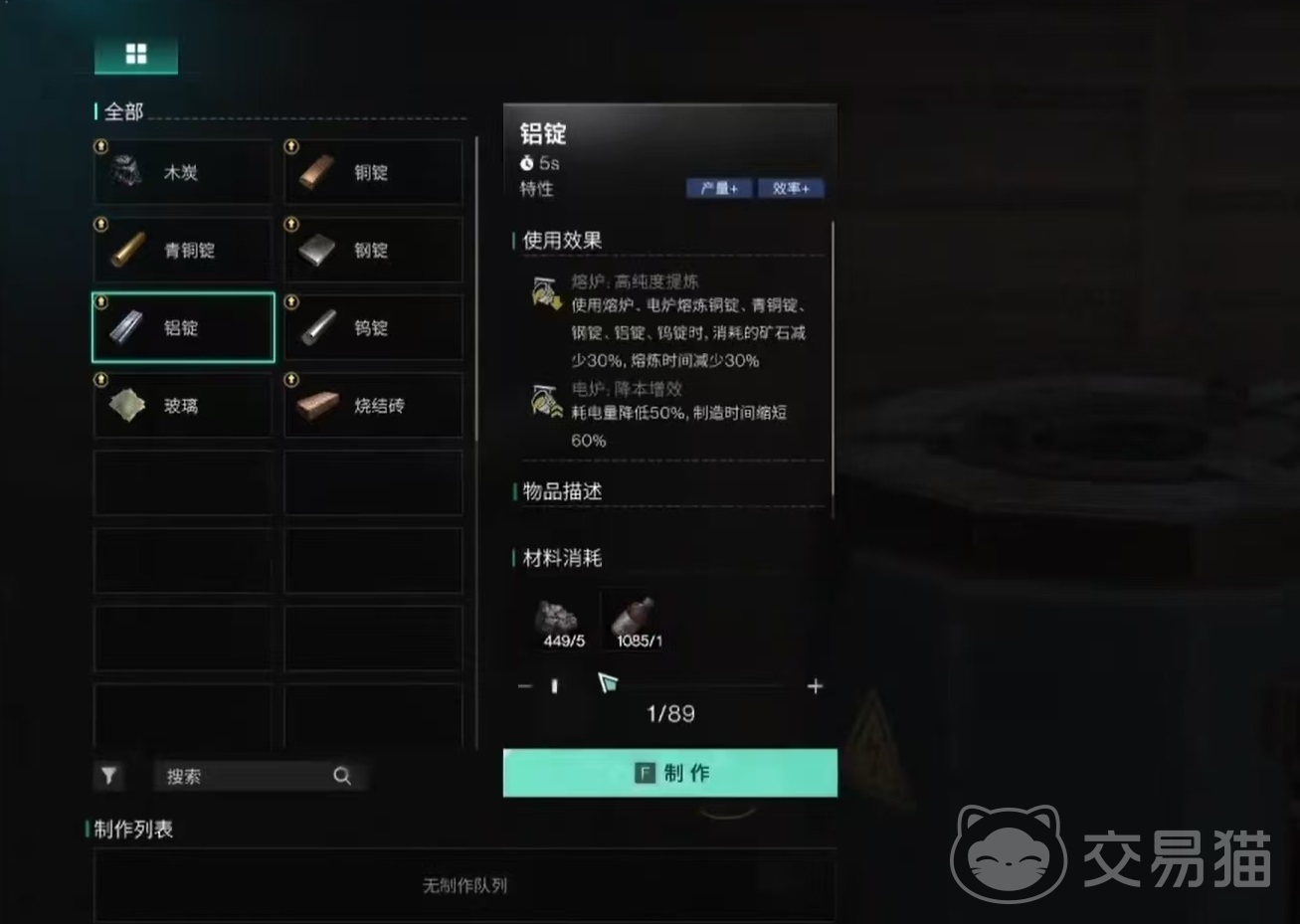 需要的材料比较多,包括40块钨锭,30个电子元件,30个自动化零件,30个特制塑料,75块原木和8根保险丝。集齐这些原料之后就能够开始建造,在这些原料中,铝锭是通过电炉加工矿石之后得到,原木是通过砍伐树木得到,电子元件、自动化零件和特制塑料,都是在世界中寻找或者是通过拆解废品方式来获得,保险丝是在轻型工艺台中制作得到。总体来说,这些原材料的获取并不算困难,相信大家经过一段时间的冒险后,手中都会有相应的存货。
