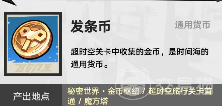 通用的材料就是”发条币”,是时间海的通用货币,不管是角色等级还是突破都需要消耗这种材料。超时空关卡当中可以收集,魔方塔、秘密世界等均有产出。角色等级提升依赖“时光汽水”,该材料有中杯,大杯,超大杯的区别,增加的经验点也不同,分别是100,500,2000点。