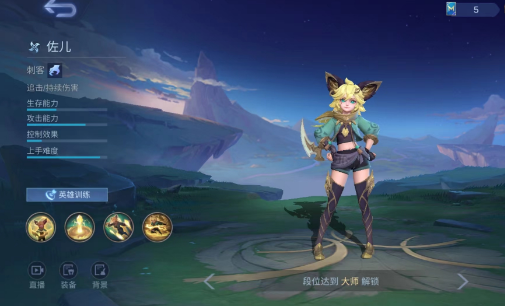 决胜巅峰佐儿是很多人感兴趣的角色,一二技能看似比较简单,却能够频繁释放,也能对敌方造成严重影响,在团战时能释放大招,能够让该角色达到最佳输出状态。由于属于刺客近战英雄,因此上手难度较高,不适合新手选择。
