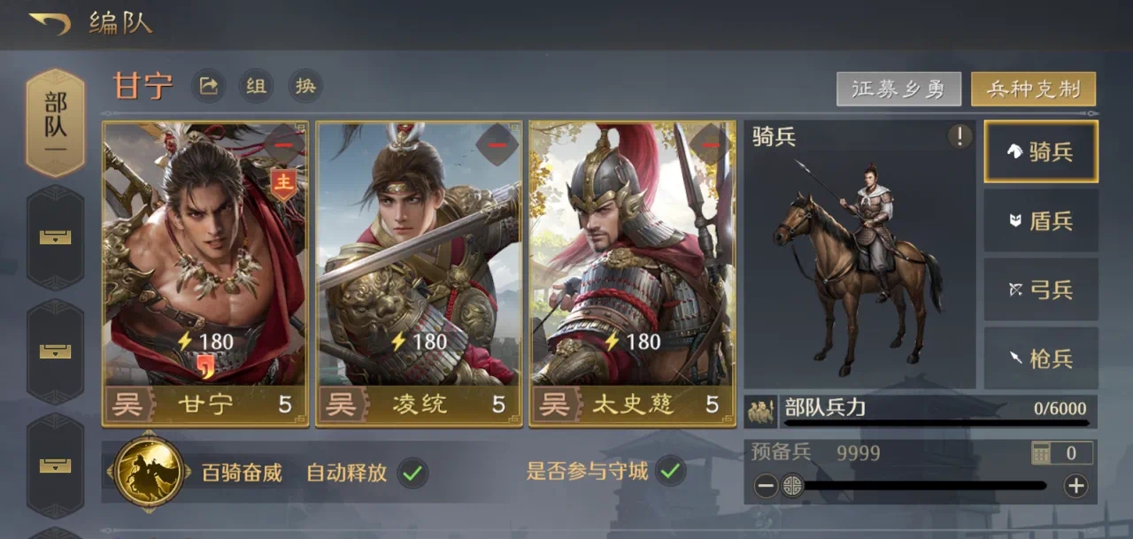 该作品的兵种克制关系为枪兵可以用长枪在骑兵赶过来之前将其捅下马,而骑兵可以无视盾牌兵的抵挡直接从上方偷袭,盾牌兵又可以抵挡远处射来的弓箭,弓箭兵又重新克制长枪兵。这就形成了一个闭环,所有的武将都是有能量条的,满了之后就会自动释放,正常会以头像和缩略图来为玩家们标注出来武将在战场的哪里。