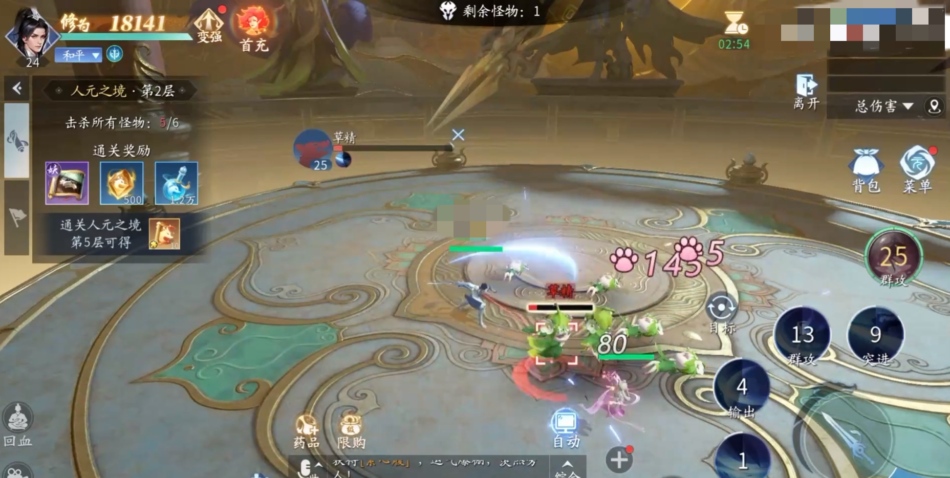 而玩家们此时的等级应该在17级左右,再升一级可以解锁本职业的第三个群体伤害技能,随后就要跟随着主线剧情来击败幕后黑手魍魉护法,这也是玩家们在前期遇到的第一个boss,亲测直接使用自动挂机然后就能击败,前提是要把背包里的装备和灵宠全部都培养完善。