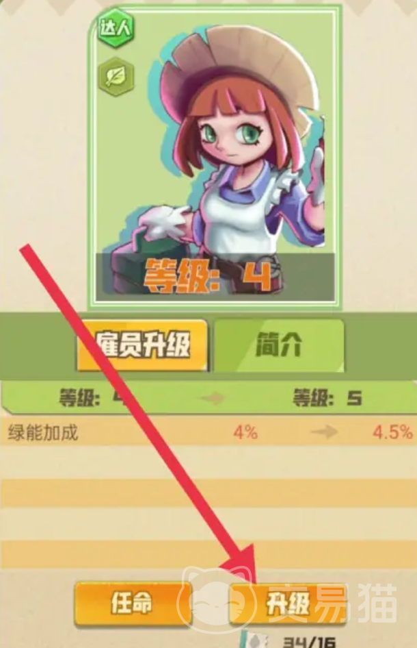 这时候就需要升级园丁了,园丁升级以后会获得更加高级的技术,同时还能扩大城市的装饰面积,让每一个楼层看起来都有种大自然的美感,升级需要消耗16个员工券就可以,每级的提升都需要同等的员工券。