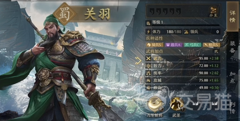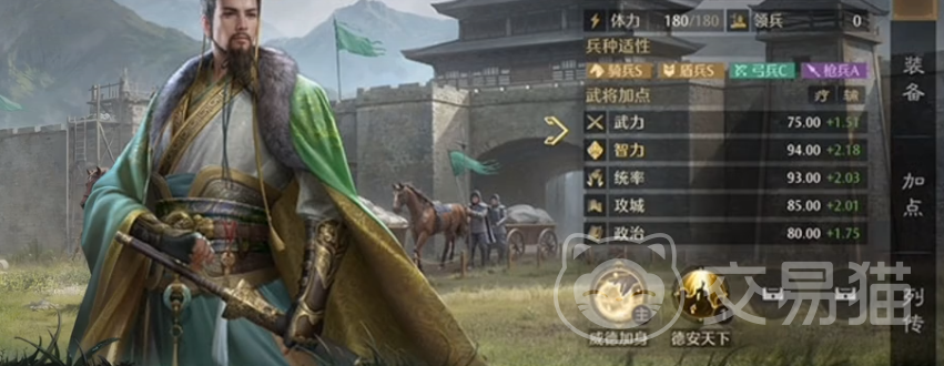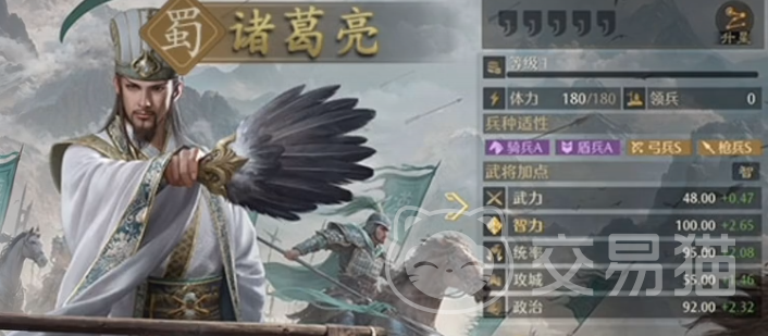 这位是属于金色武将,也是整个阵营武将之中非常强的一位。他本身的属性以智为主。其统帅和执政能力都是一流的。关于兵种,他擅长弓兵以及枪兵。 同时和其他金色武将不同,另外的骑兵和盾兵本身的实力也有A级。整体在兵种上的实力属于很强势的。