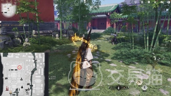 接下来,沿着寺庙的竹林走一走。这里宁静而清幽,竹影摇曳,仿佛一幅禅意画卷。但别只顾着看风景,重点是找到一个正在练功的和尚。这个和尚可不是普通的NPC,他是“无相金身”的守护者。只见他盘腿坐在地上,闭目打坐,似乎完全沉浸在修行之中。如何从和尚手里拿到无相金身?硬抢肯定是不行的,毕竟和尚的功夫不容小觑。这里需要用到另一门奇术——射星拿月。这门奇术堪称偷东西的神技,能够悄无声息地从目标身上取走物品。任务的关键就在于如何悄悄接近和尚,利用射星拿月把奇术偷到手。