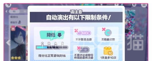 在自动演出时,玩家也可以看到在画面的右下角就会有一个AUTO LIVE,在这一个时候自动演出的成绩一般都不可能会被记录下来,得分往往会低一些。就算能够顺利的通关,也没有办法获得歌曲的奖励,只是得到了掉落奖励,只有选择消耗一个以上的体力才可以进入到接下来的自动演出阶段。
