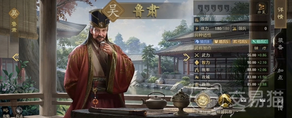 可回兵力可增伤,令鲁肃成为了吴国势力流派里当仁不让的首选治疗,其自带技能更是效果出众,只要发动了便能让主将获得谋略伤害提升。