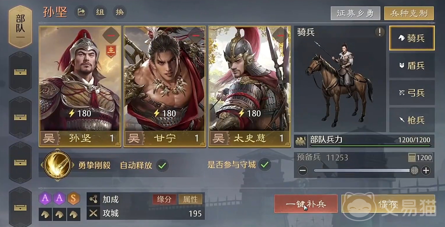 该作中的武将会根据特性不同而被分为两种类型,即武力武将与谋略武将,并且三种同类型的武将会让兵种获得的加成效果达到最大,所以在搭配时最好以三武力或三谋略为主,在不缺武将时还请不用让采用武力与谋略混搭的方案。武将的体力觉得着他能否为玩家出战,且体力的回复速率较慢,所以人们最好在不太重要的战斗中安排副队上阵,尽可能地让主力队的体力用在关键之处。