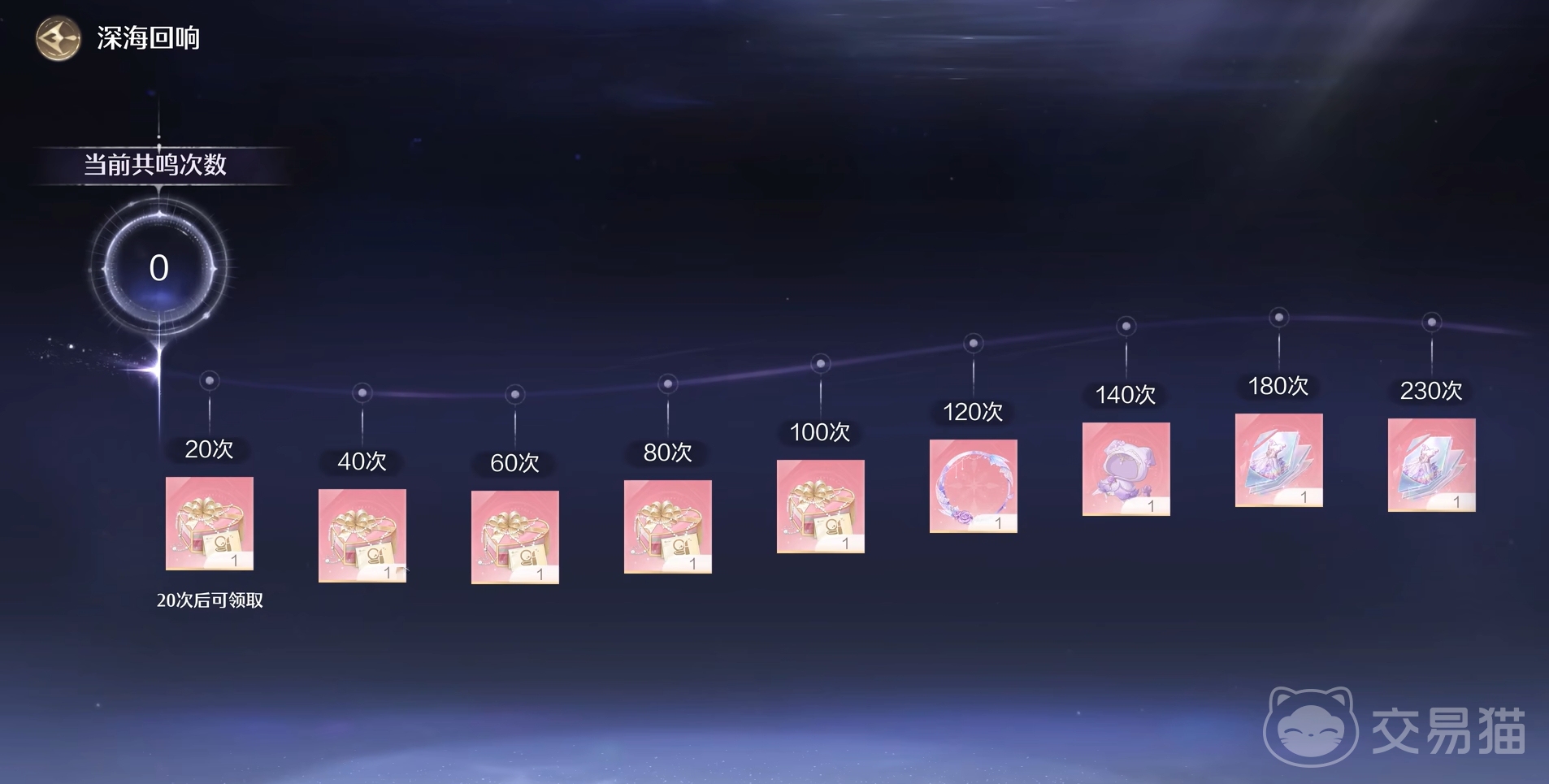 深海回响是人们在限时阁进行共鸣时可从游戏内获得的福利,只要达到相应的共鸣次数,便能从中领取对应的奖励。这些奖励包括一些自选饰品,或是限定服饰的升级素材等,可让限定服饰升至更高的星级。但由于拿满深海回响所需的共鸣次数非常多,因而人们最好良心而行。