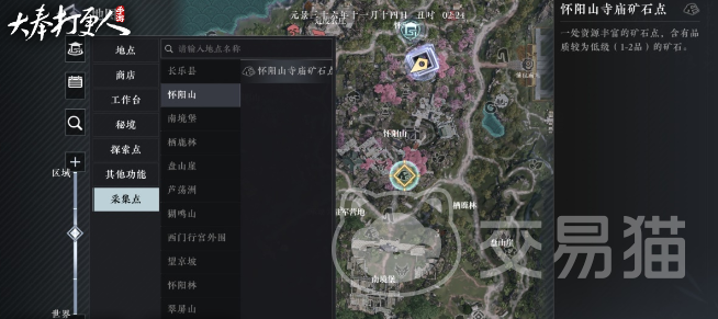 对于寻找资源所在地,在大奉的广阔天地间,资源之地静待着每一位侠士的探索。其实,发现这些资源之地并非难事。只需轻轻展开地图,在周边区域轻点那些代表着资源的图标。或者也可以利用那精巧的放大镜功能,在资源列表中细细寻觅你所需之物,一旦选定就启动追踪,游戏便会为玩家指引一条通往该地的路径,供玩家前往采集。