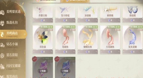 共鸣商店拥有很多稀有材料,例如:共鸣水晶、服饰套装、启示水晶等等。可以用重复服饰材料和货币进行兑换,如果货币不够可以参加活动或者完成任务来获得。