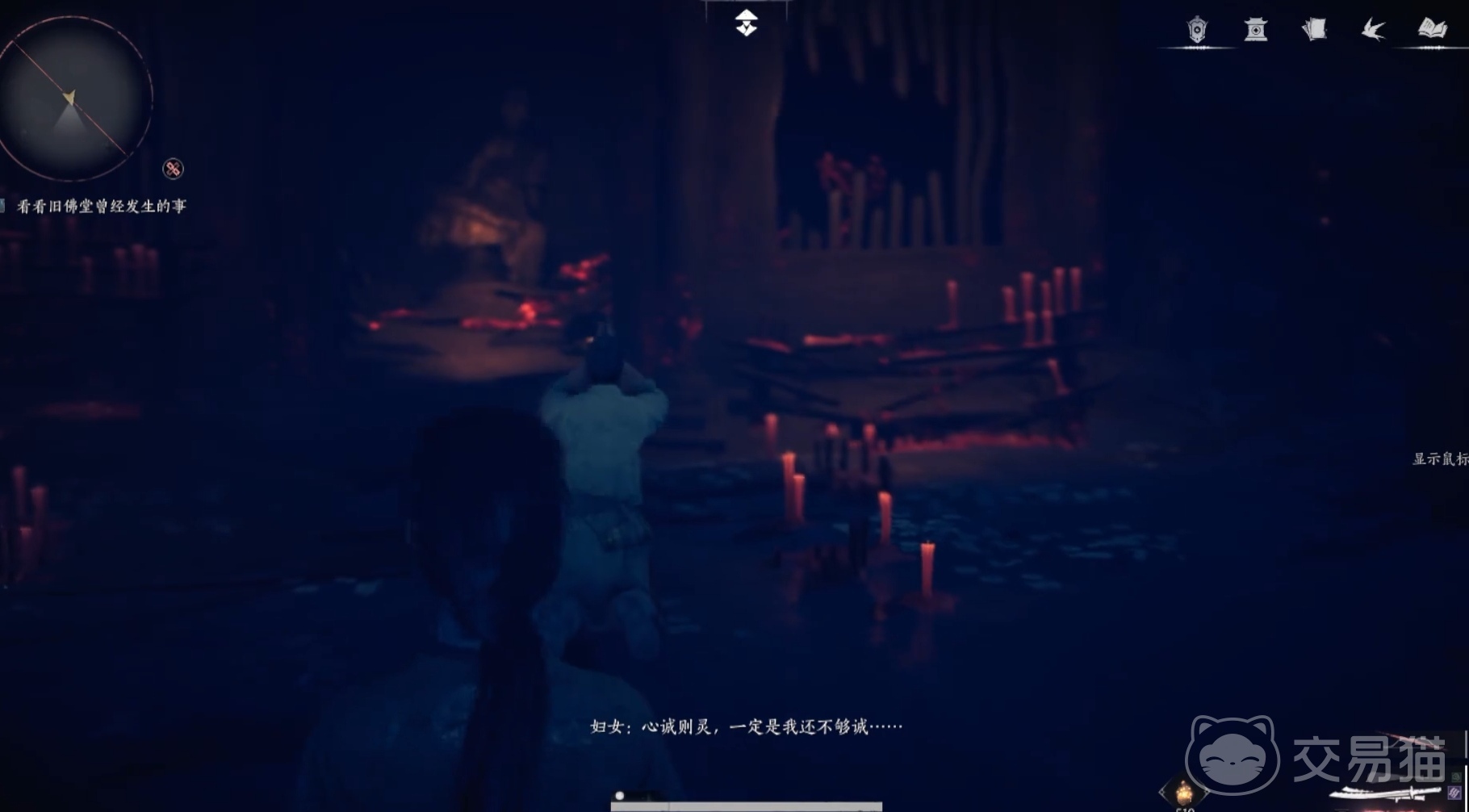 由于这场队伍还少一个举灯人,所以各位玩家将要暂代这一职位,跟着队伍前进。穿过了长廊和人群,玩家将看到许多在祈祷着的村民,其实这段就是旧佛堂曾经发生的事情,看完了这段剧情后,就要去与夜梦僧交谈,得知那些便是执念过深的人们,死后也不得安生。