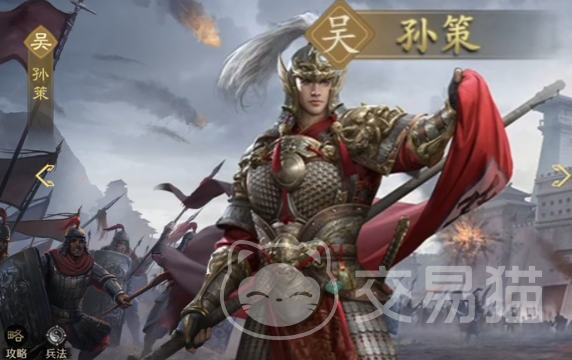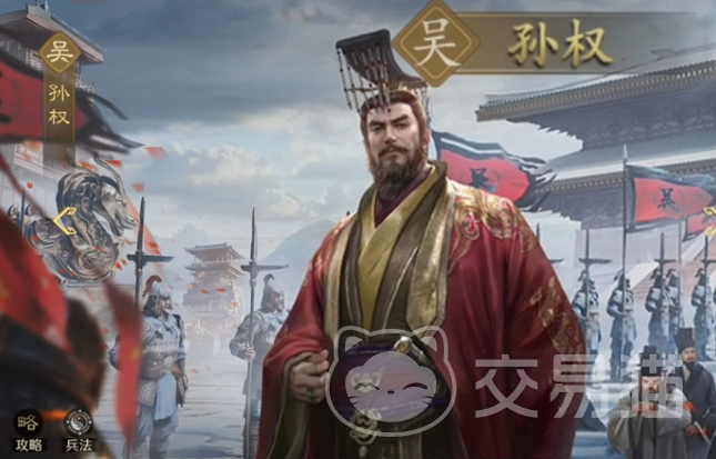 孙权,主公,带骑、弓兵,当然枪兵也适宜,智力和统率这两个方面都很不错。主将技是范围最多5单位的谋略伤害,同时驱散全体己方debuff,开战获得150怒气。自带技则是单体谋略伤害同时3秒内提升己方所有武将统率、武力、智力50点。很全面的一个攻辅类角色,适配性强。