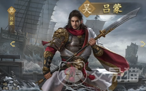 吕蒙,适宜带弓、枪兵,智力和统帅较为突出,主将技是单体高倍率谋略伤害同时附加3秒的束手状态。自带技则是受到普攻的时候有一定几率可以进行反击,给对方造成一定的谋略伤害,并概率降低敌方全体的普攻以及突击技的伤害。不错的减益输出手。