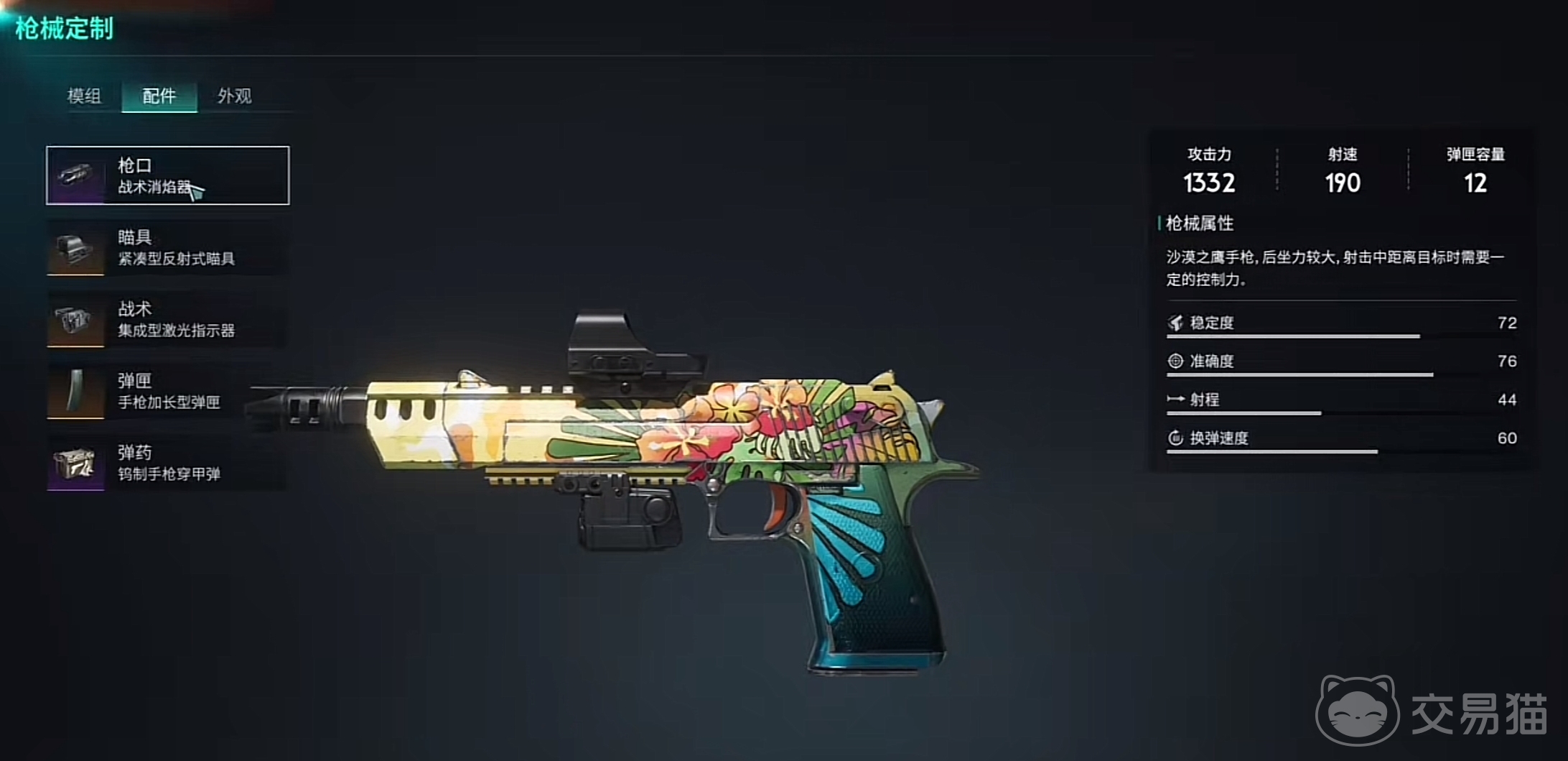 配件上枪口选择战术消焰器,面具选择紧凑型,战术选择激光,弹匣选择金色,弹药选择穿甲弹;这样搭配下来大白鲨的稳定和准确度都是非常平均的,分别对应的是后坐力和子弹散射;武器模组一定要选择爆弹战利品能够一直开枪并且爆发比较高,当大家的弹匣达到20发的时候基本上就不需要换弹了,这样搭配下来暴击率能够叠到88,再高的话也没用。
