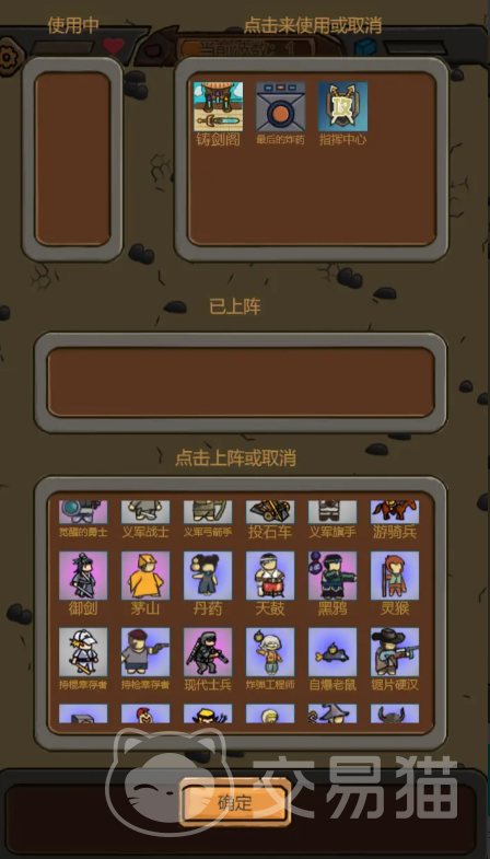 游戏前期,玩家需要考虑到各个角色之间的兵种属性,并且合理的搭配各类不同类别的兵种,前期出现的地图模式大部分都属于平原地区,不涵盖有任何的陷阱,此时玩家可以选用义军弓箭手或者是义军战士,这两个士兵,虽然并没有很高的攻击倍率,但他们的操作玩法非常简单,玩家使用人海战术也是能够应对的。