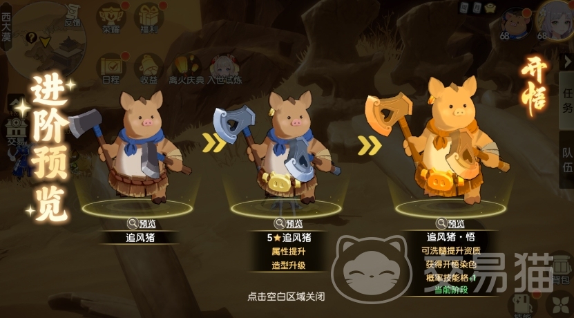 五个初始宝宝实际上,选择追风猪都是可以的,他是首选宠物,因为它的实力还行,如果觉得自己的追风猪不够强力,那可能是因为没有正确地给它打书,按照游戏中的推荐进行打书,后期的溅射猪将会非常强大,当然如果开局抽到了神兽剑客猫、鬼骑或凤凰等单挑攻击很强的神兽,也可以选择火鲵作为宠物,因为爬塔最合理的配置是一个单体爆发和两个群体伤害。