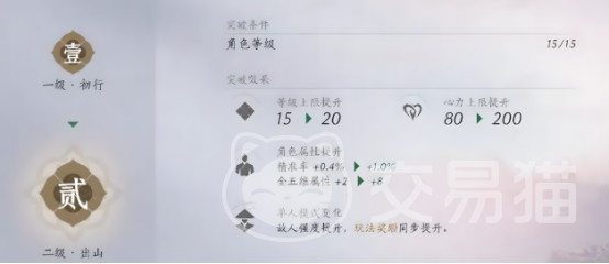 首先当玩家的等级到达上限,之后,如果想成功突破,那么必须要达到相应的要求,比如在达到15级之后,就需要完成突破的任务。在此之后每上升5级的时候都要经过突破,而每次突破的要求和任务都完全不同,玩家必须要按照相应的要求来进行解决。直至到达40级的时候就要在开封地区的寺庙当中和僧人进行对话。