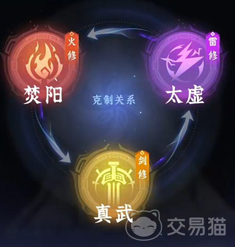 三大职业分别是火修、雷修和剑修,他们三个是互相克制的,具体的关系可以直接参考下图,首先带大家了解下火修,这个职业主打群伤灼烧,能进行大范围的攻击,能够给敌人附加上灼烧。