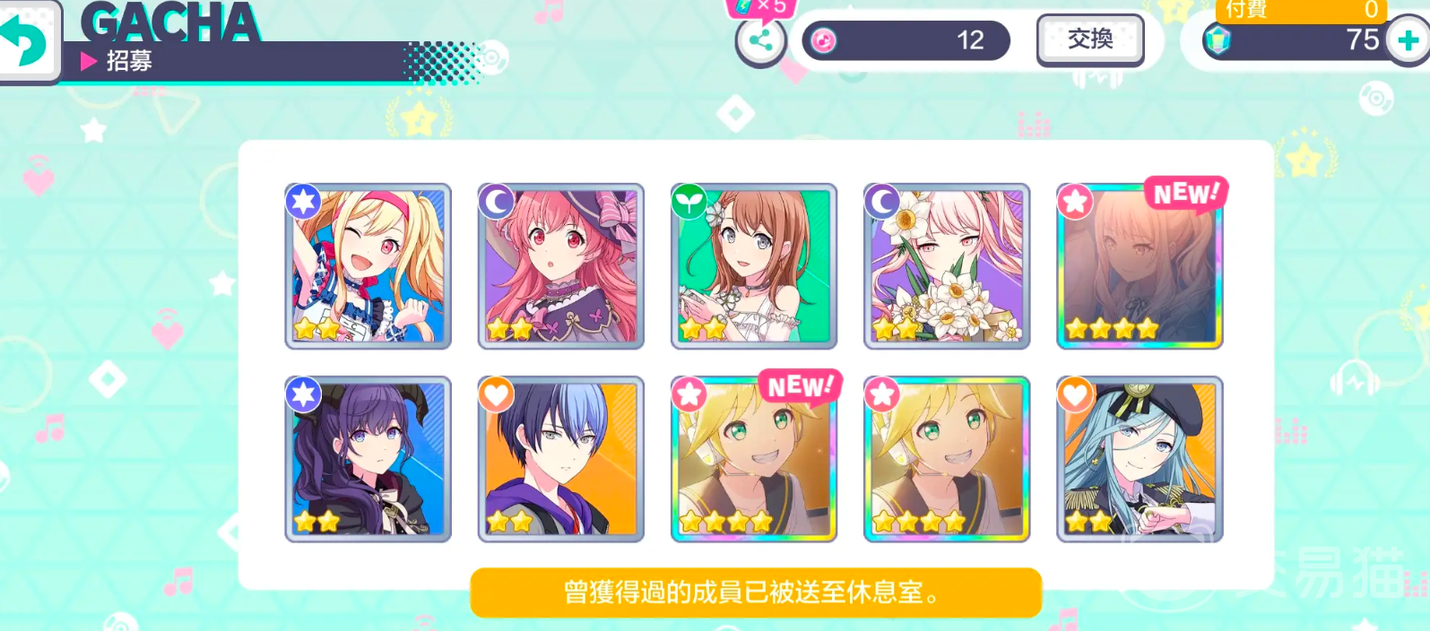 首先游戏目前一共有20位原创角色和6位虚拟歌手,他们按照稀有度被分为1、2、3、4星,除了之外还有生日限定成员,1星角色过主线就能得到,2和3星能通过招募或交换所交换活动,4星只能通过招募和招募贴纸兑换获得,而生日限定只能通过生日限定卡池招募,在大家抽取到4星角色后,可以让她穿着自带的演出服,之后还可以去服装商店中为其他角色制作该服装。